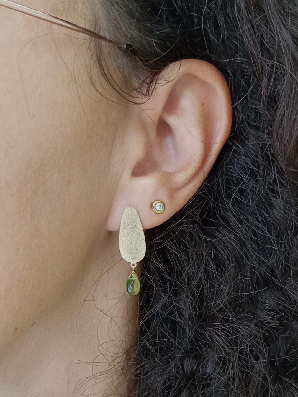 Χειροποίητα σκουλαρίκια απο επιχρυσωμένο ασήμι 925 με σταγόνες περίδοτου.