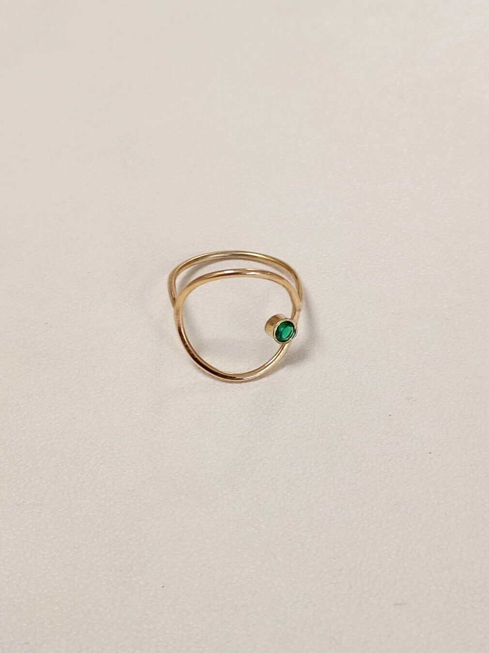 Χειροποίητο δαχτυλίδι απο ασήμι 925 επιχρυσωμένο, με πράσινο ζιργκόν. Μίνιμαλ σχέδιο που μπορεί να φορεθεί καθε μέρα.