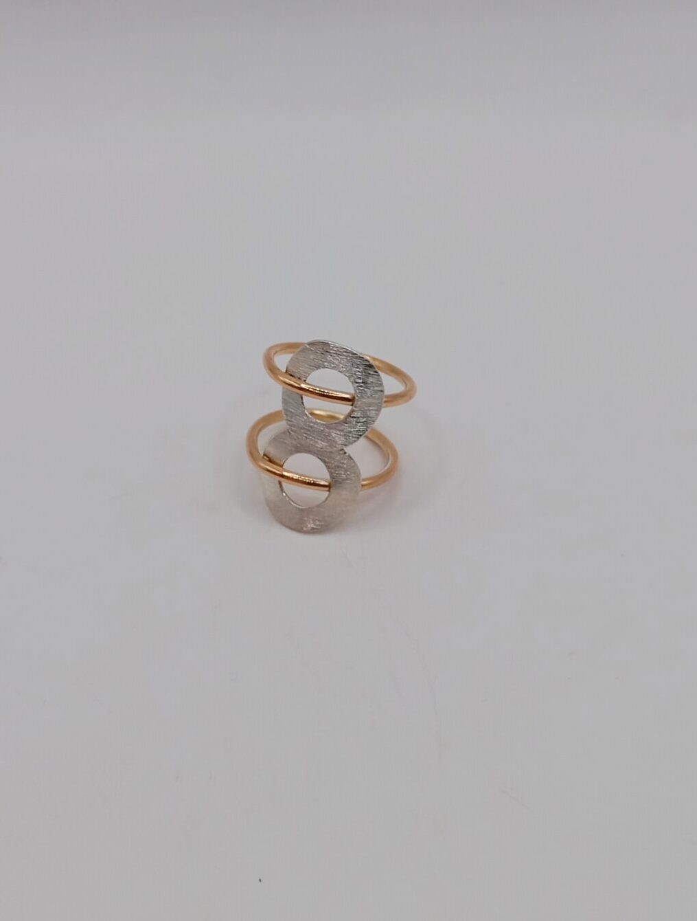 Χειροποίητο δαχτυλίδι απο ασήμι 925 σε δυο χρώματα. Ένα ιδιαίτερο σχέδιο με δύο γάμπες που συμβολίζει την ένωση.